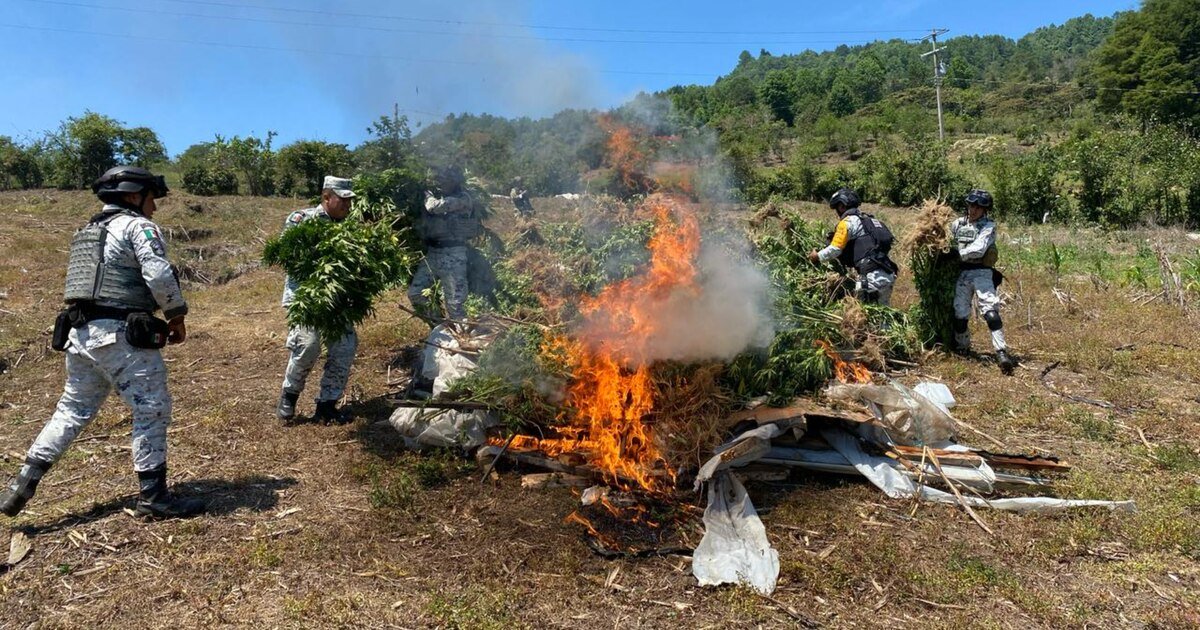 Elementos de la Guardia Nacional, en coordinación con personal del Ejército mexicano y autoridades de los tres órdenes de gobierno, localizaron y destruyeron cuatro plantíos de mariguana con una superficie de 9 mil 975 metros cuadrados en el estado de Chiapas.
