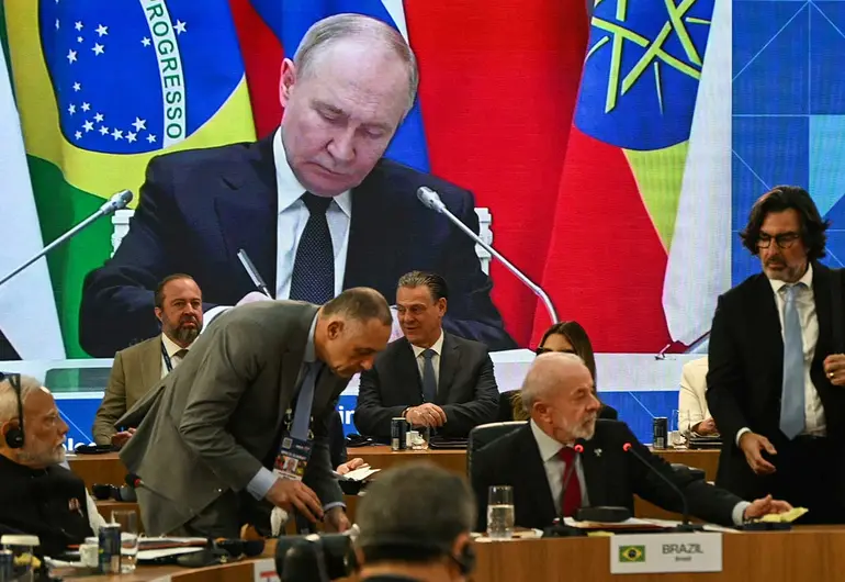 La cumbre del grupo BRICS inició este domingo en Río de Janeiro con la participación virtual del presidente ruso Vladimir Putin y la ausencia del presidente chino Xi Jinping, evento que reúne a once países que representan cerca del 40% del PIB mundial y busca establecer una postura común frente a temas como el proteccionismo, el conflicto en Medio Oriente y la reforma del sistema financiero internacional.